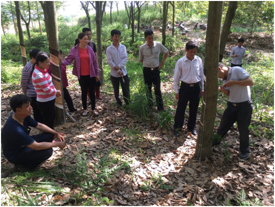 此次培訓(xùn)采取理論與實(shí)際操作相結(jié)合的方式,農(nóng)場(chǎng)割膠總輔導(dǎo)員許安樂(lè)針對(duì)橡膠開割樹的管理和常見病害治療等方面開展詳細(xì)的講解,到橡膠園開展磨刀技能和割膠技術(shù)現(xiàn)場(chǎng)指導(dǎo),對(duì)學(xué)員在割膠操作過(guò)程中存在的不規(guī)范動(dòng)作一一予以糾正。通過(guò)此次復(fù)訓(xùn),有效提高了職工科學(xué)管理橡膠園的水平,為今年干膠的高產(chǎn)穩(wěn)產(chǎn)奠定了基礎(chǔ)。